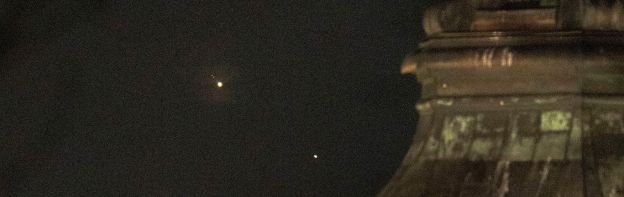 Jupiter hat Saturn schon weiter überholt (nach Osten).